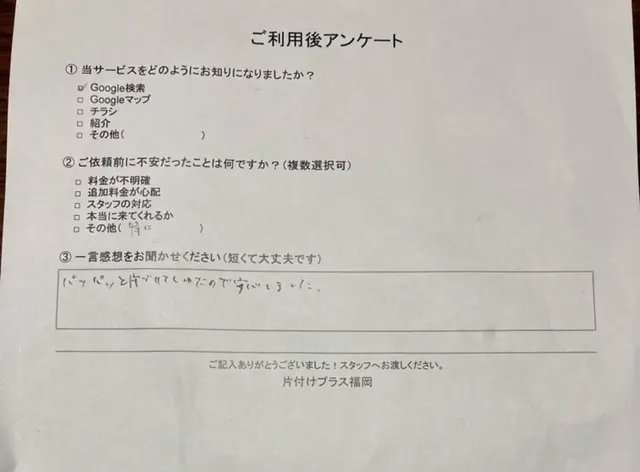 パッパッと片付くてくれたので安心しました。